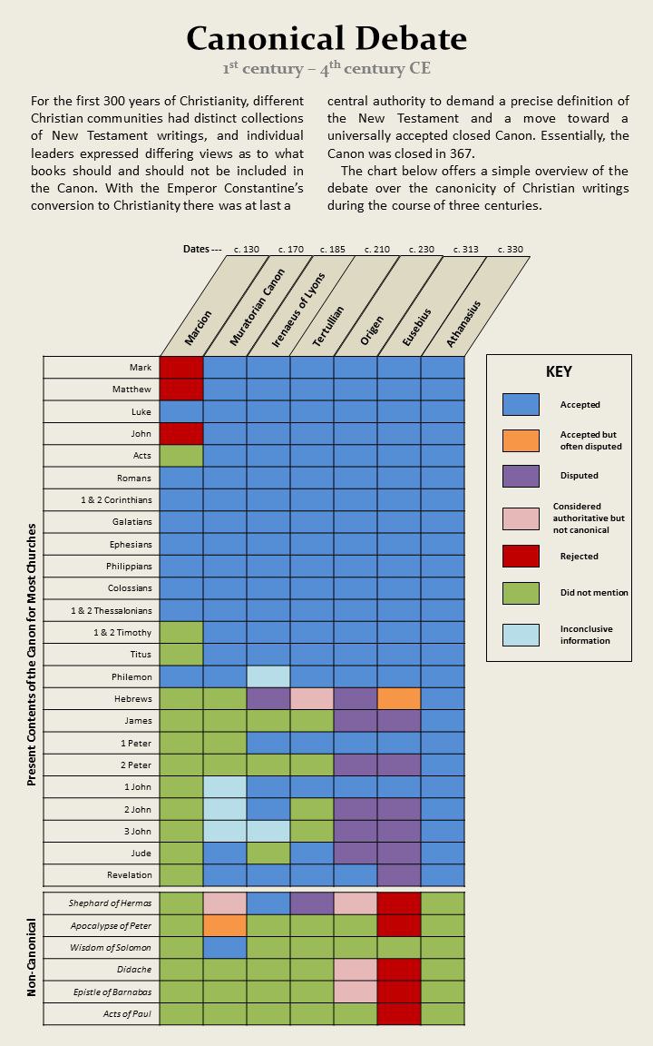 O gráfico oferece uma visão geral simples do debate sobre a canonicidade dos escritos bíblicos ao longo de três séculos.